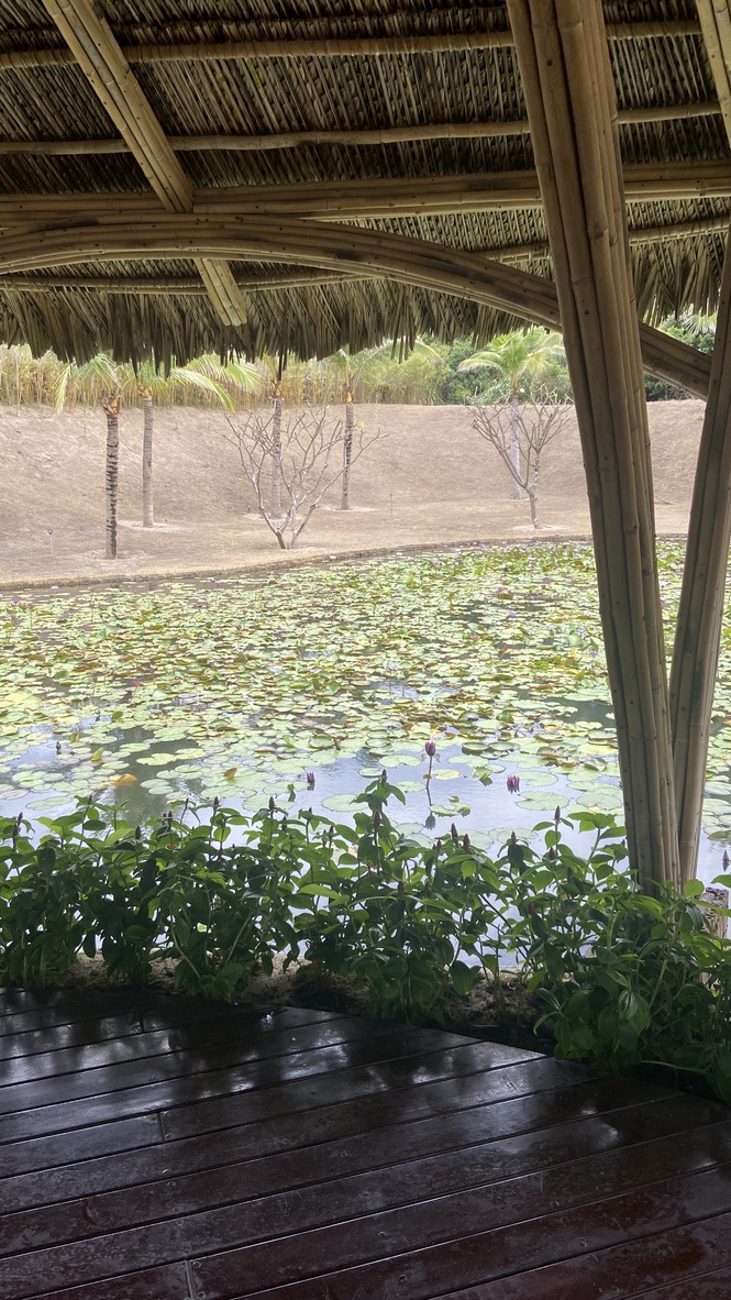 연꽃이 둘러싸인 장소에서 명상을 했어요